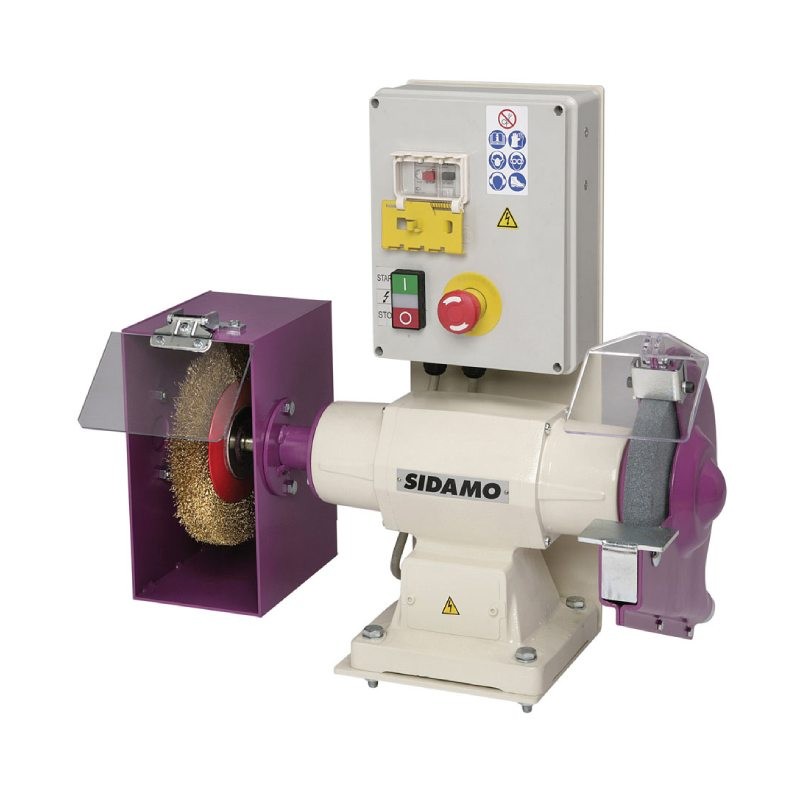 Die Schleifscheibe mit Bürste und Bremse 134 FR Sidamo eignet sich für eine sehr intensive Nutzung und ermöglicht das Trockenschleifen und Polieren von Eisenmetallen bei einer Leistung von 0,75 kW und einem Durchmesser von 200 mm.