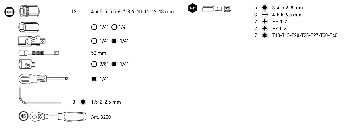 Le coffret à cliquet 40 outils, douilles 1/4" Metallic Kraftwerk est très compacte et vous permet de le transporter facilement avec vous. Livré dans une boite métallique.